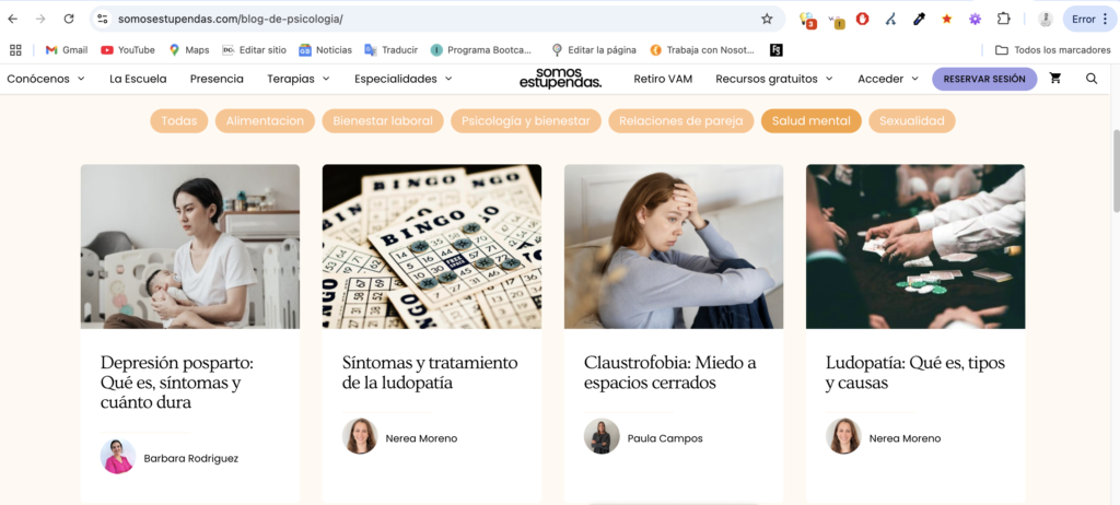 Un blog de salud con silos separados para “Nutrición”, “Ejercicio” y “Salud mental”, cada uno con sus propios artículos y sin enlazar fuera del silo. Un ejemplo podría ser somosestupendas.com